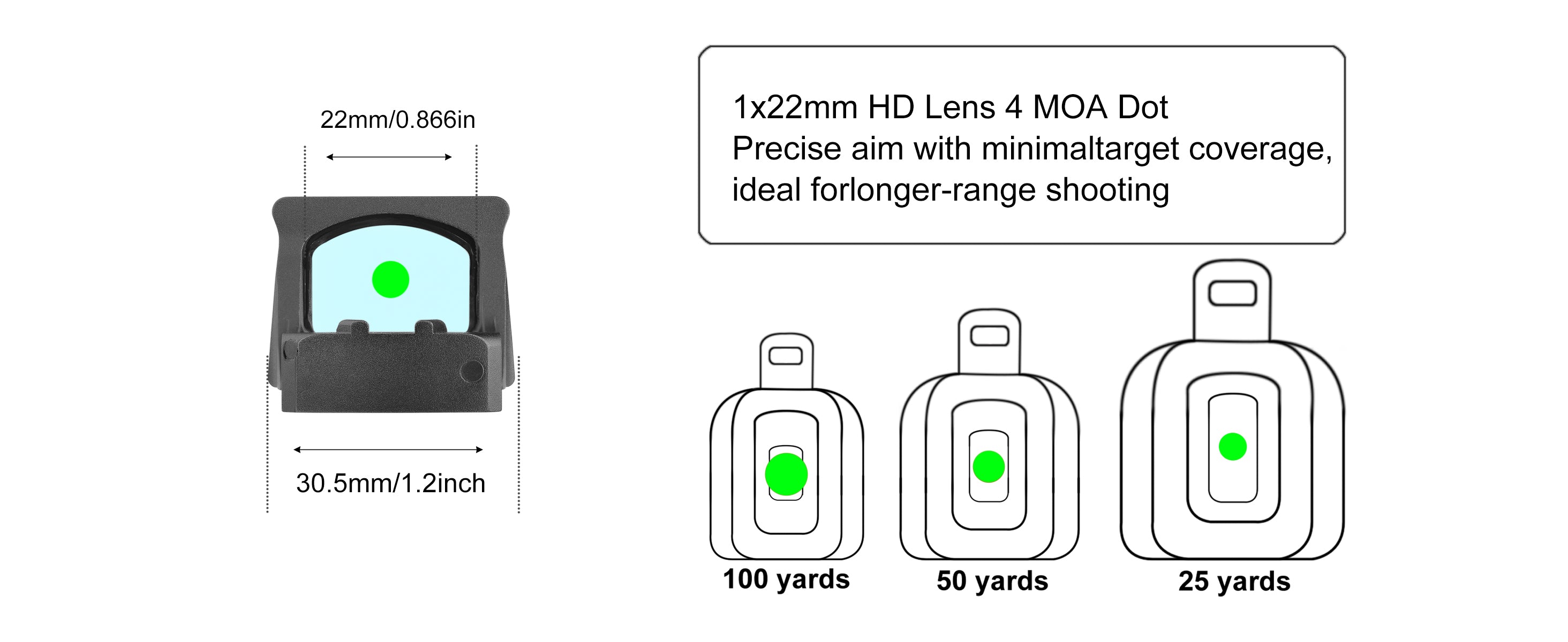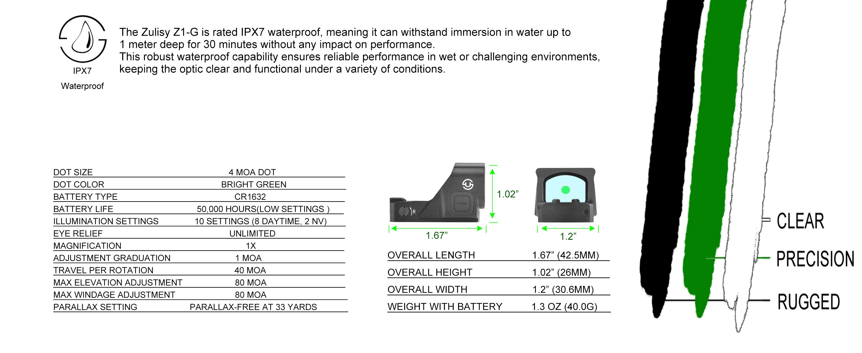 ZULISY Z1-G 4 MOA Micro Green Dot Sight, for RMS RMSc 407K Footprint Compact Pistol Mount, Shake Awake 1x22mm Mini Open Reflex Sight, 1 click 1 MOA