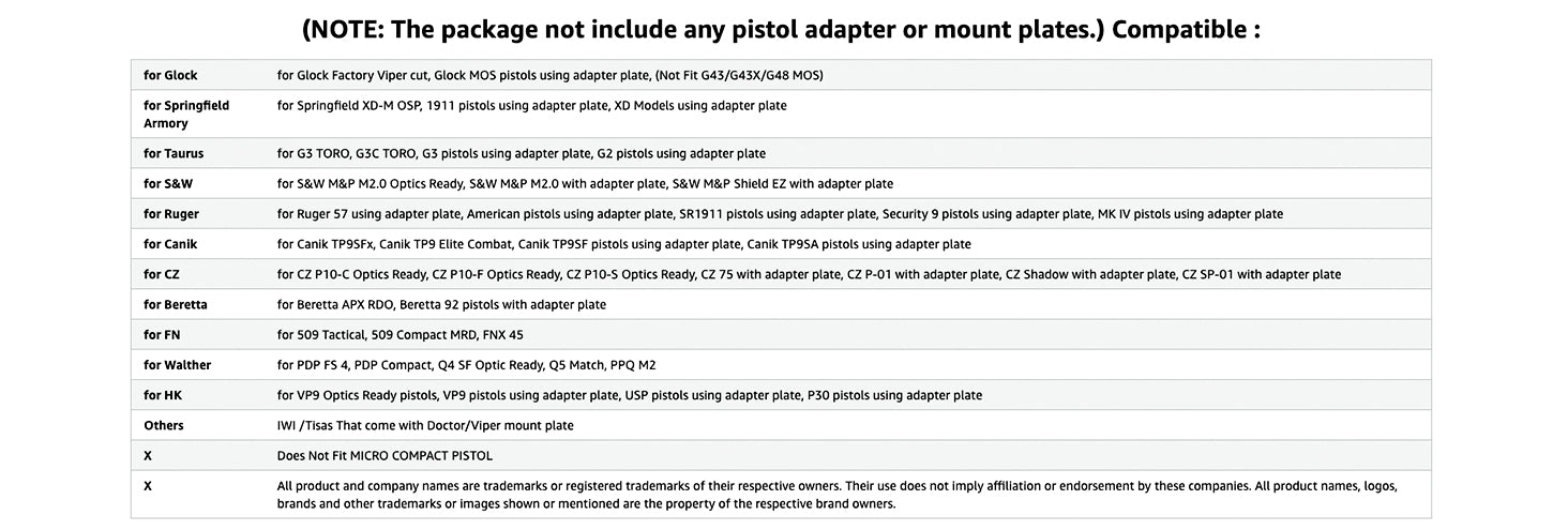 NOTE: The Zulisy OWLc DOES NOT FIT RMR / SRO, 407C / 507C / 508T, RMS / RMSc ( 407k / 507k ) / DPP Footprints. (DOES NOT FIT MICRO COMPACT PISTOL)