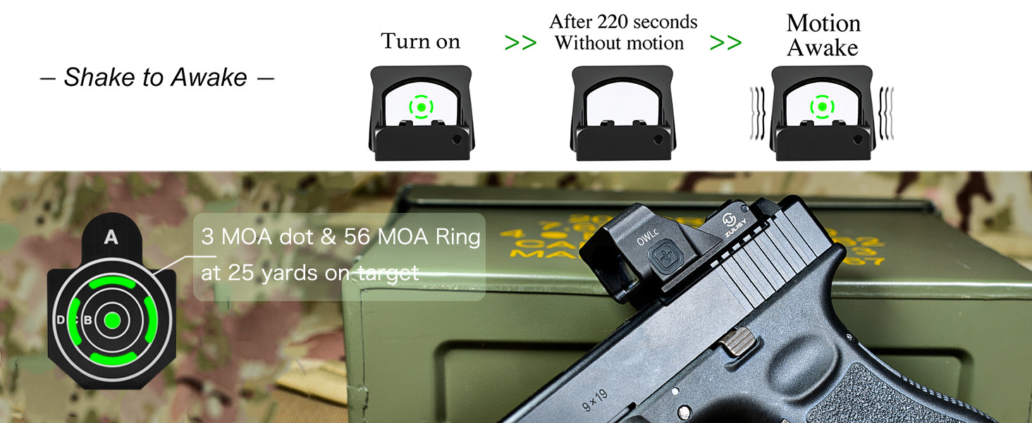 This tech ensures your dot sight remains in an energy-saving standby mode, instantly reactivating with a gentle shake or movement.