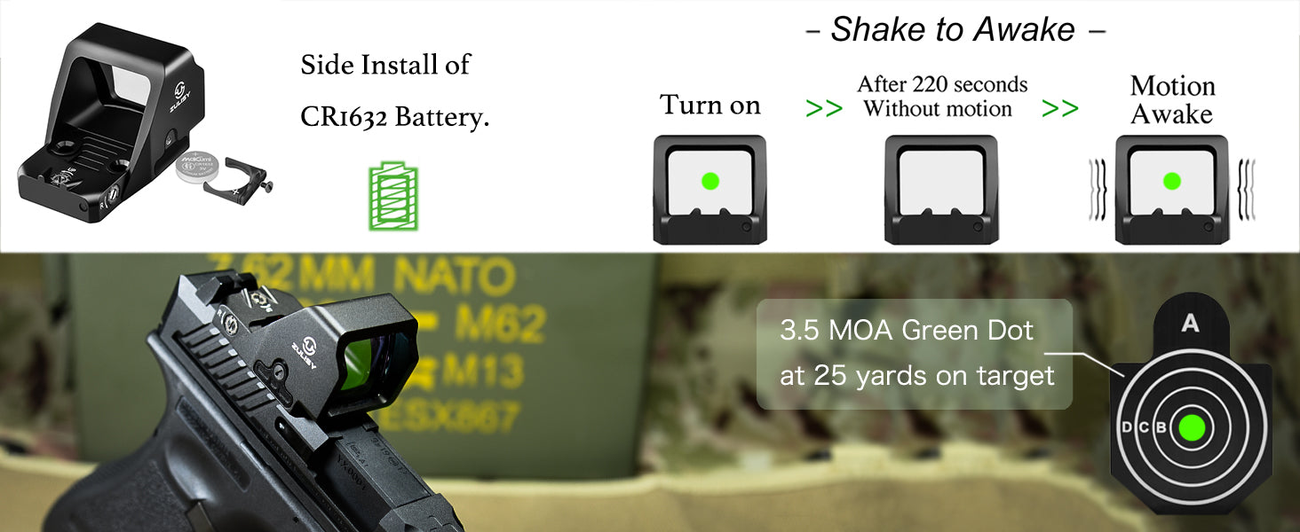 This tech ensures your dot sight remains in an energy-saving standby mode, instantly reactivating with a gentle shake or movement.