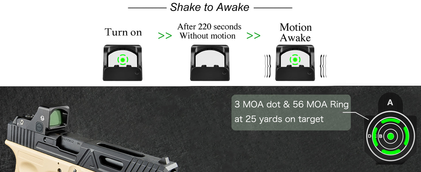 This tech ensures your dot sight remains in an energy-saving standby mode, instantly reactivating with a gentle shake or movement.