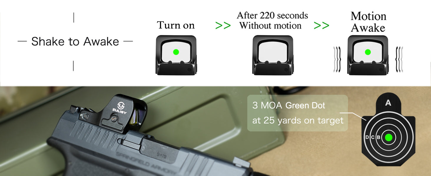 This tech ensures your dot sight remains in an energy-saving standby mode, instantly reactivating with a gentle shake or movement.